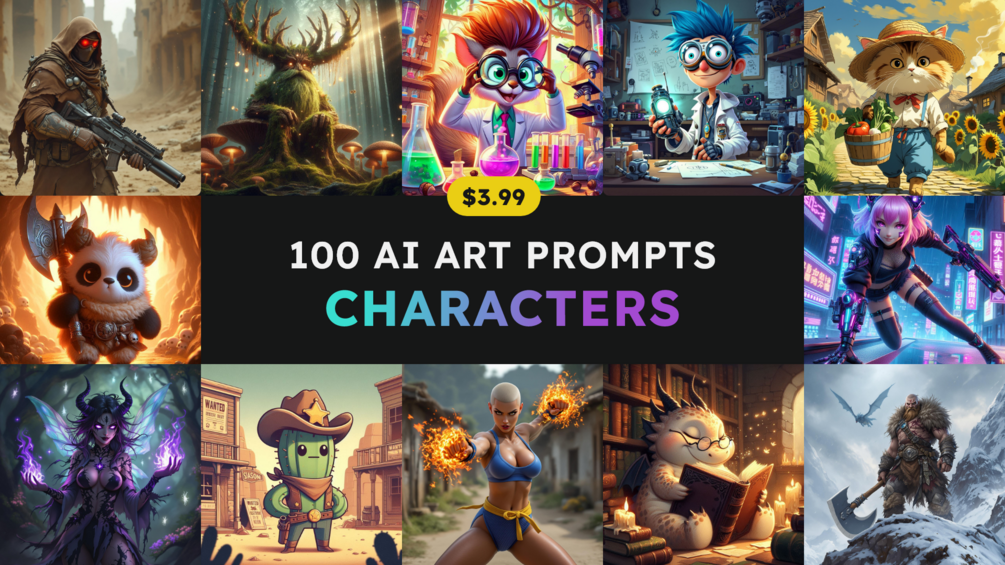 Explore 100 AI Art Prompts for Characters in Different Styles and Genres! From whimsical fantasy heroes to gritty cyberpunk rebels, this ebook is filled with diverse and creative prompt ideas. Perfect for DALL·E, Flux, Leonardo AI, Midjourney, and Stable Diffusion, it’s an essential resource for artists, designers, and AI art enthusiasts looking to generate unique and expressive character designs.